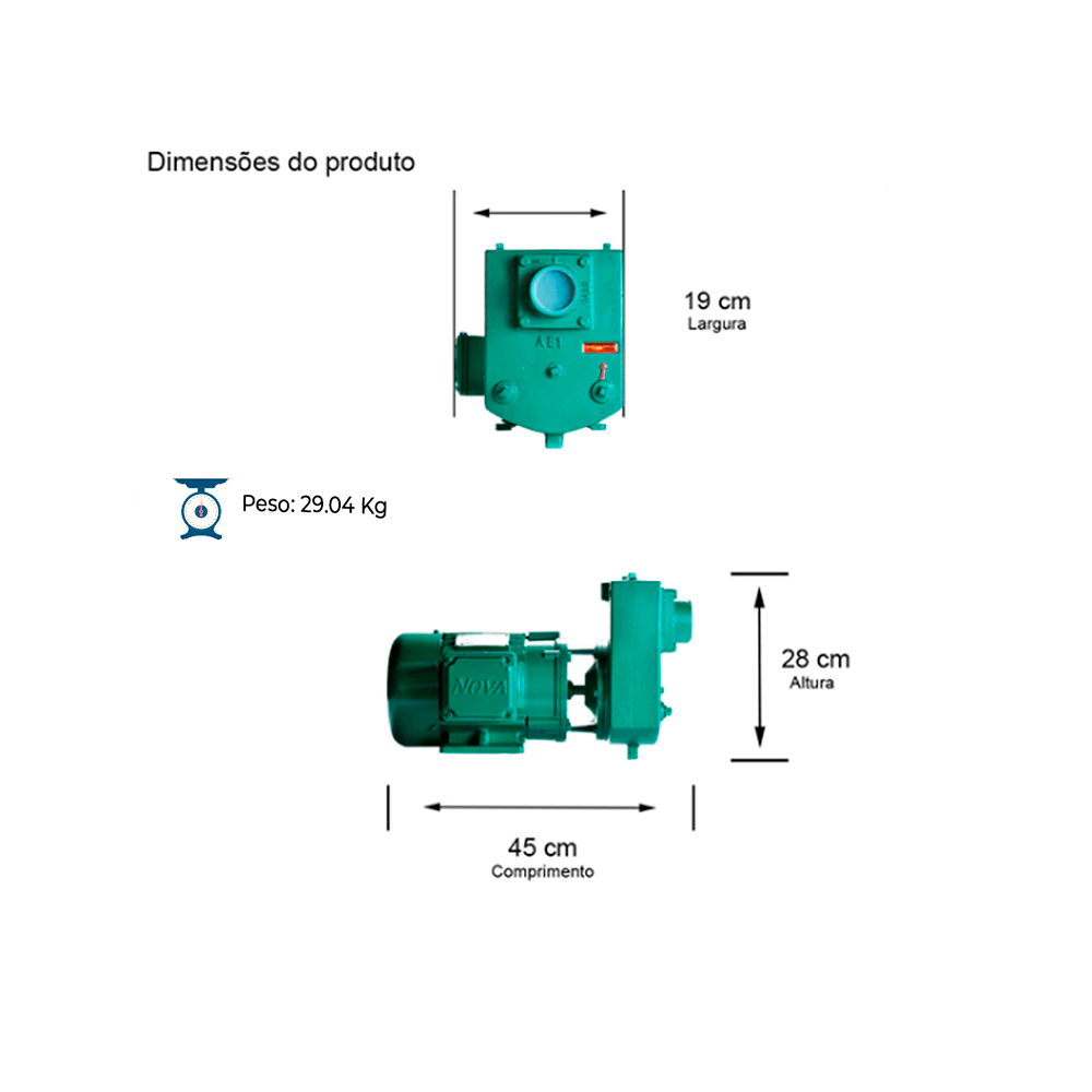 BOMBA AUTOESCORVANTE MONOESTÁGIO AEX-1 1,0 CV MOTOR TRIFÁSICO NOVA IP55 220/380/440v ROTOR SEMIABERTO 7/16X107MM