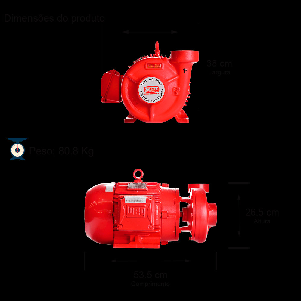 BOMBA INCÊNDIO CENTRÍFUGA MONOESTÁGIO THSI-18 10,0 CV MOTOR TRIFÁSICO WEG.IP55/IR3.2P.220-380/440V.60HZ. ØROTOR 7/8X172MM. SELO MEC.1" T12 BUNA