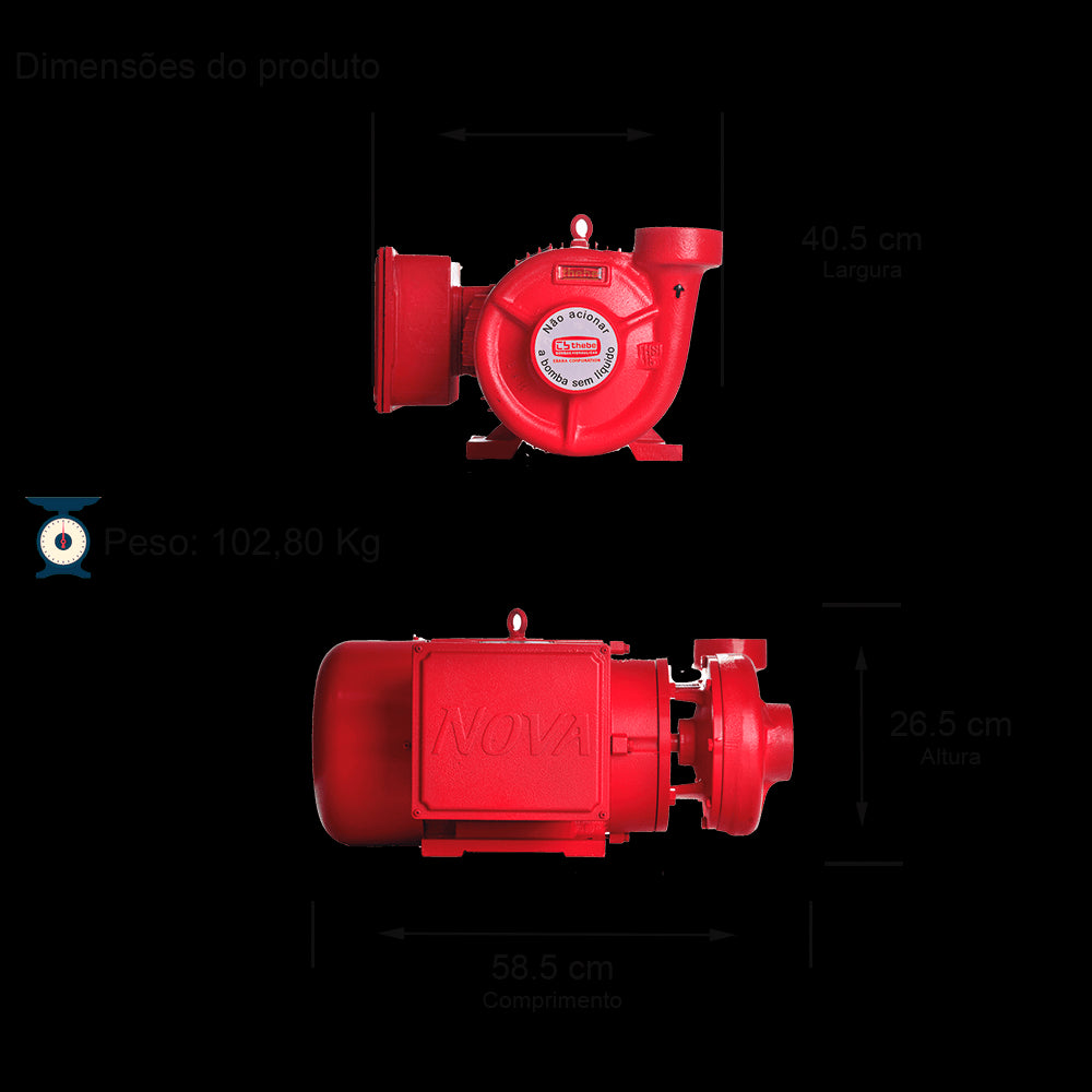 BOMBA INCÊNDIO CENTRÍFUGA MONOESTÁGIO THSI-18 10,0 CV MOTOR MONOFÁSICO NOVA.IP55.2P.220.254/440-508V.60HZ. ØROTOR 7/8X179MM. SELO MEC.1" T12 BUNA