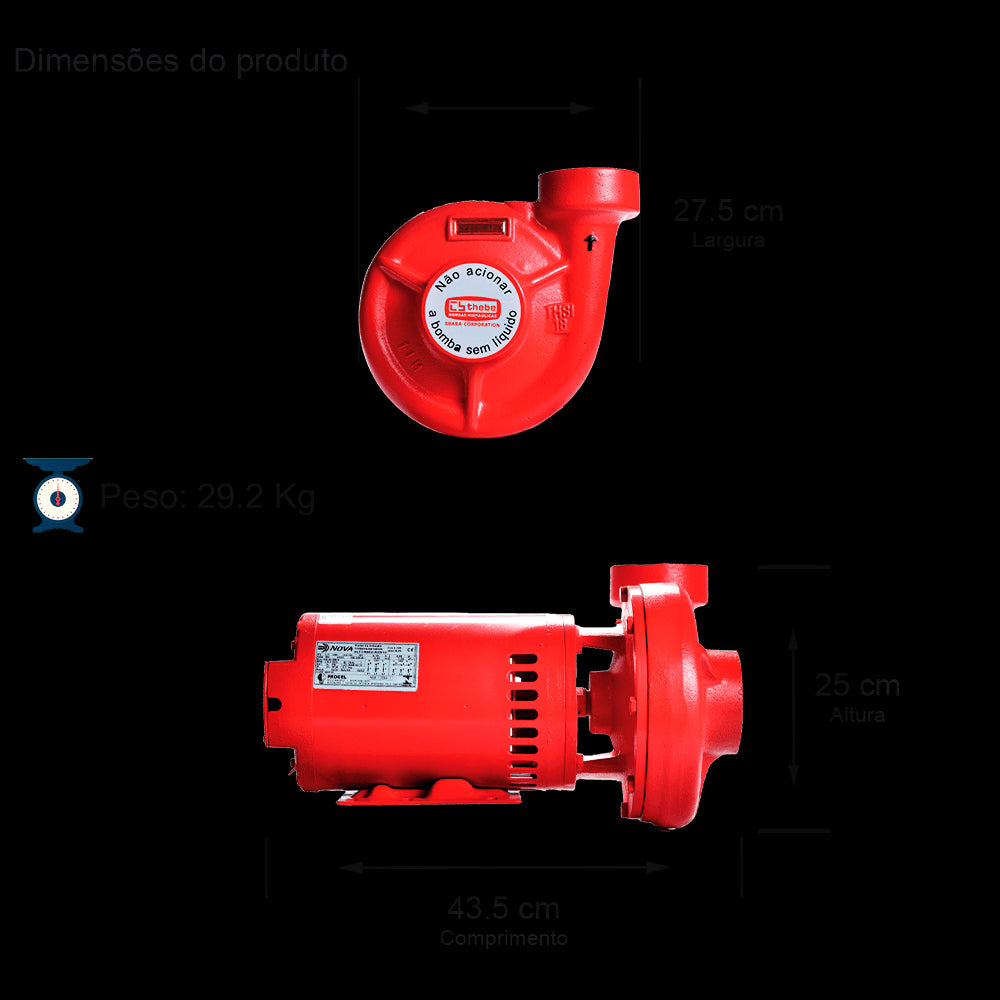 BOMBA INCÊNDIO CENTRÍFUGA MONOESTÁGIO THSI-18 3,0 CV MOTOR TRIFÁSICO NOVA.IP21/IR3.2P.220/380V.60HZ. ØROTOR 7/8X123MM. SELO MEC.1" T12 BUNA