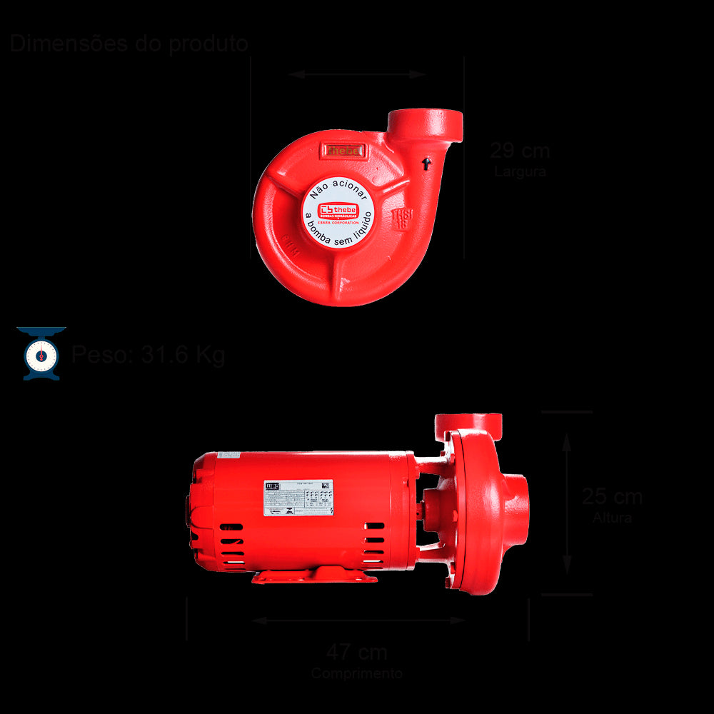 BOMBA INCÊNDIO CENTRÍFUGA MONOESTÁGIO THSI-18 3,0 CV MOTOR TRIFÁSICO WEG.IP21/IR3.2P.220/380V.60HZ. ØROTOR 7/8X128MM. SELO MEC.1" T12 BUNA