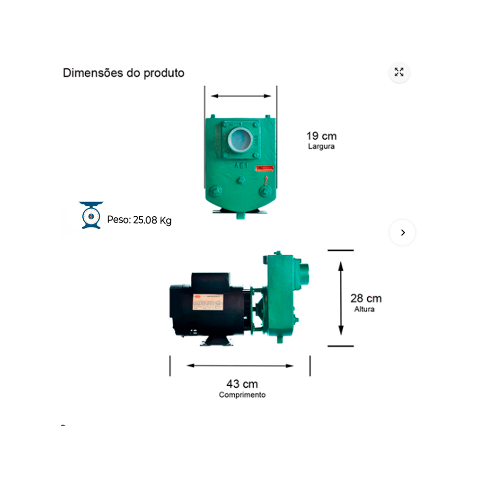 BOMBA AUTOESCORVANTE MONOESTÁGIO AEX-1 1,5 CV MOTOR MONOFÁSICO THEBE.IP23.127/220-254V.C/P ROTOR SEMIABERTO SELO MEC.5/8" T12 BUNA