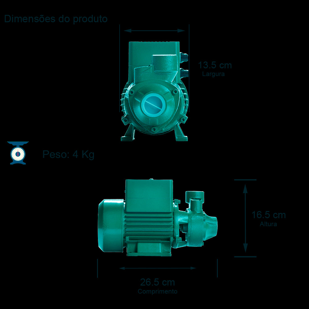 Bomba com carcaça em ferro fundido e rotor em bronze