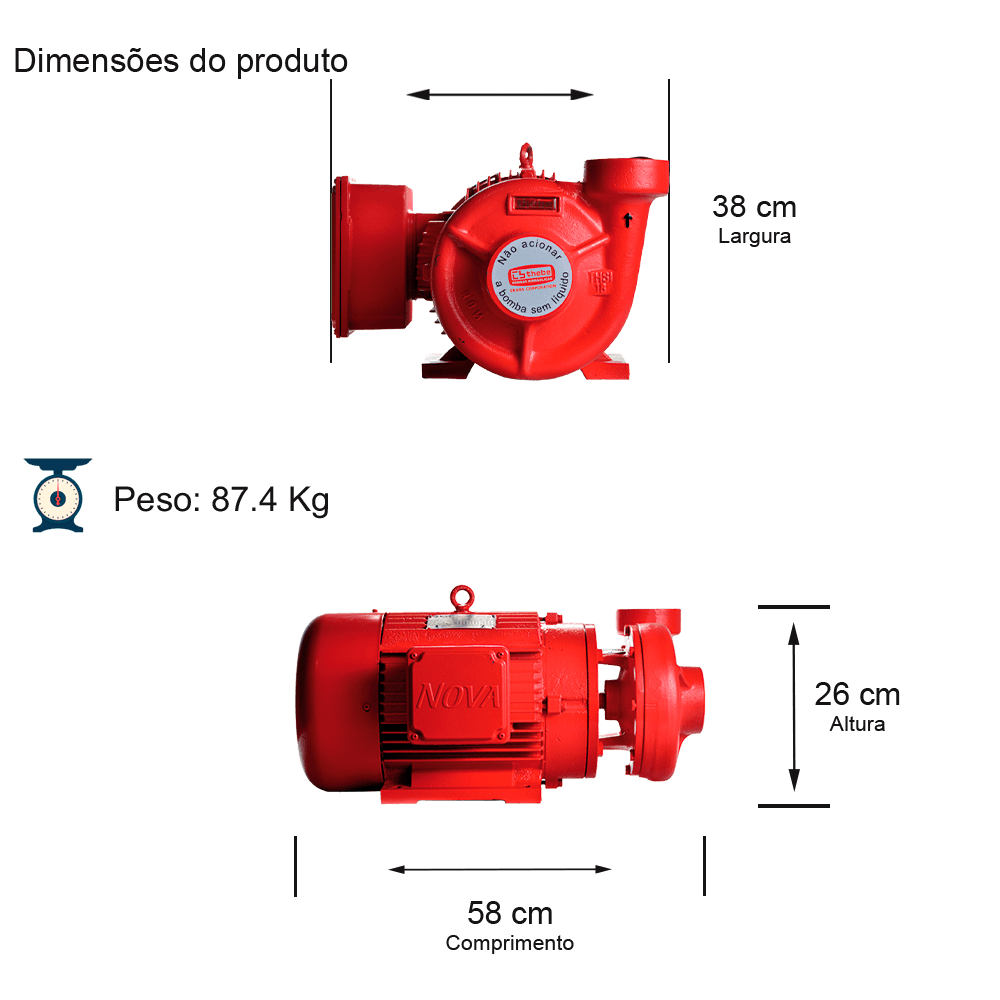 BOMBA INCÊNDIO CENTRÍFUGA MONOESTÁGIO THSI-18 12,5 CV MOTOR TRIFÁSICA NOVA IP55 220/380/440v ROTOR 7/8X179MM