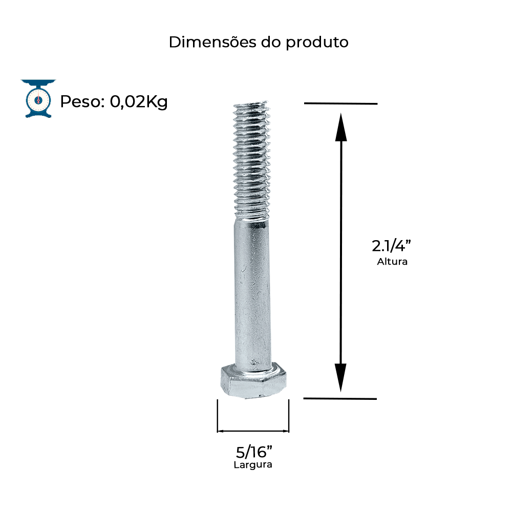 PARAFUSO SEXTAVADO.UNC 5/16 X 2 1/4 RP ZB