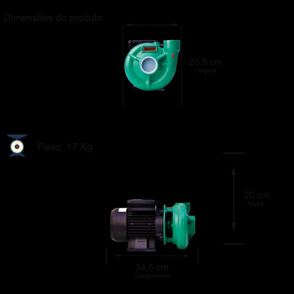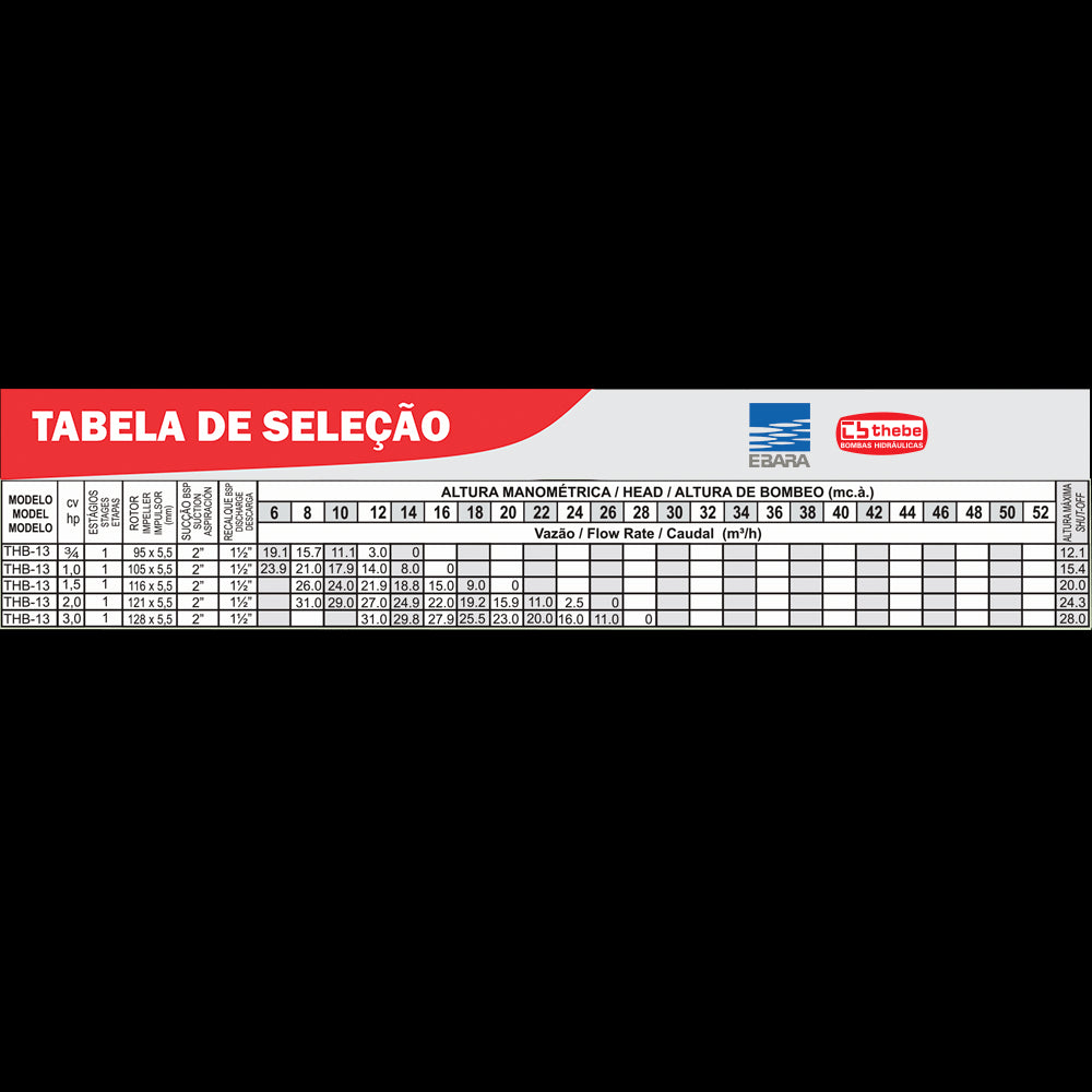 BOMBA CENTRÍFUGA MONOESTÁGIO THB-13 1,0 CV MOTOR THEBE MONOFÁSICO IP55 127/220-254V ROTOR 105X5.5MM