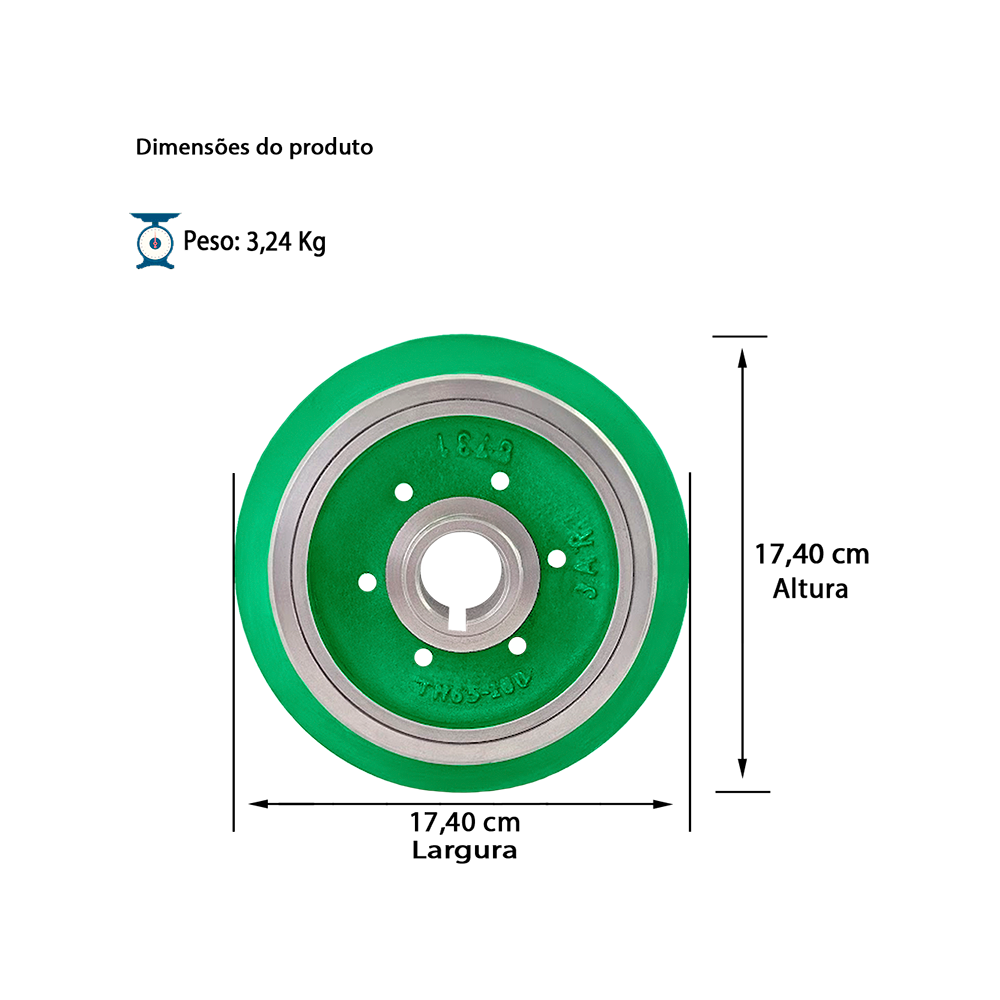 Rotor fechado em ferro fundido GG-20 com 174mm, aleta de 21mm e furo do eixo de 31,75mm chaveta de 6,35mm para montagem no modelo de bomba TH-65/160 monobloco.