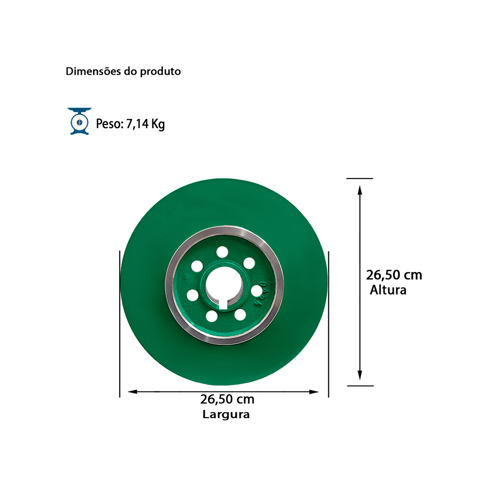 Rotor Fechado em Ferro Fundido GG-20 para montagem na bomba TMDL-27 265mm, furo 48mm e Chaveta de 9,53mm