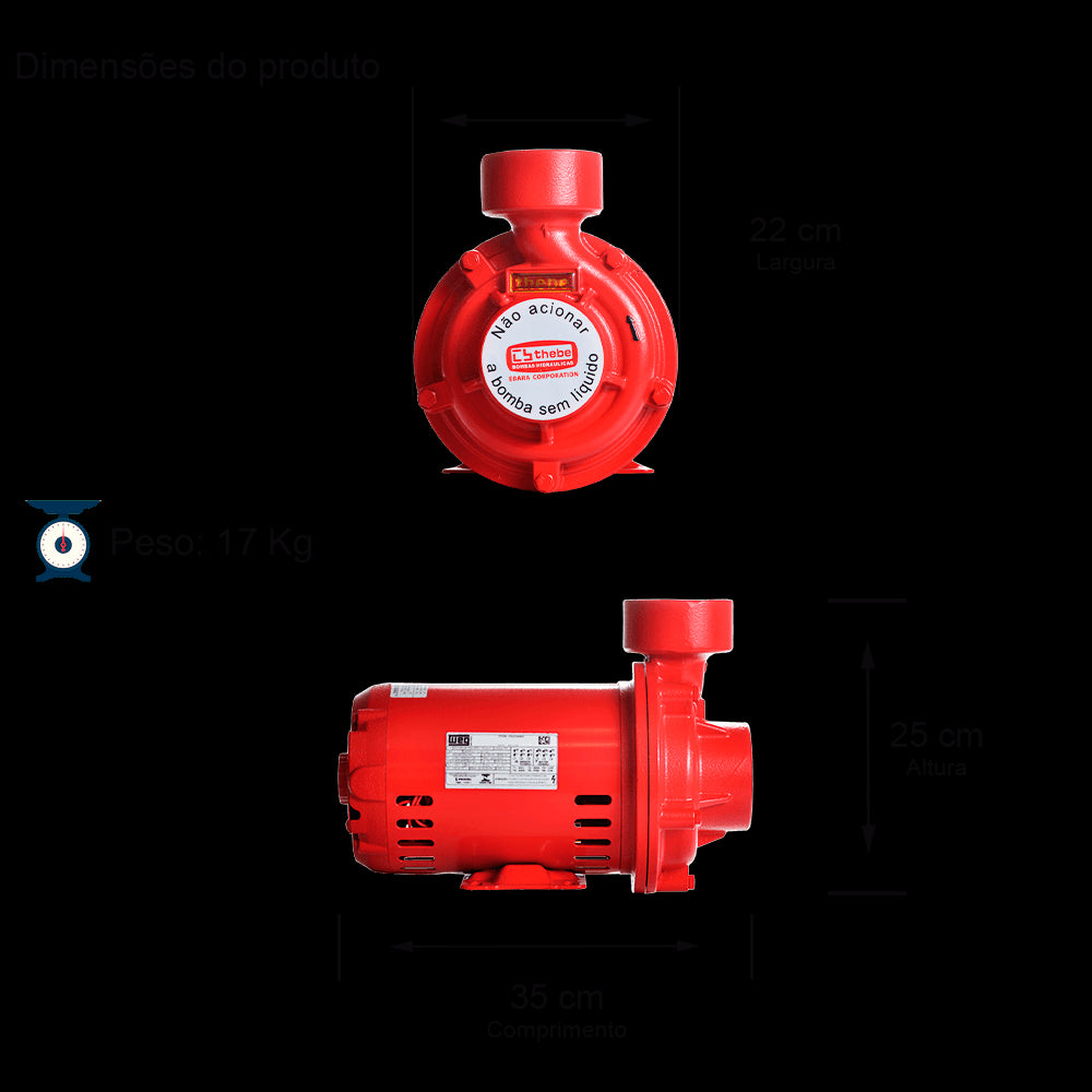 BOMBA INCÊNDIO CENTRÍFUGA MONOESTÁGIO THI-13 1,0 CV MOTOR TRIFÁSICO WEG.IP21/IR3.2P.220/380V.60HZ. ØROTOR 91MM. SELO MEC.5/8" T6 BUNA