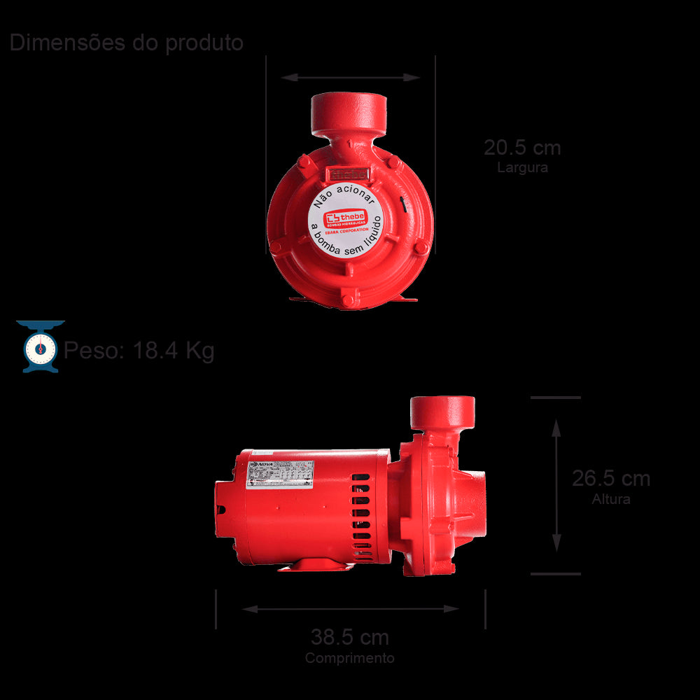 BOMBA INCÊNDIO CENTRÍFUGA MONOESTÁGIO THI-13 1,5 CV MOTOR TRIFÁSICO NOVA.IP21/IR3.2P.220/380V.60HZ. ØROTOR 102MM. SELO MEC.5/8" T16 BUNA