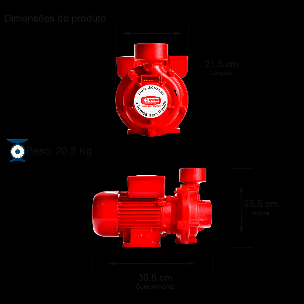 BOMBA INCÊNDIO CENTRÍFUGA MONOESTÁGIO THI-13 2,0 CV MOTOR MONOFÁSICO THEBE.IP55.2P.127/220-254V.60HZ. ØROTOR 123MM. SELO MEC.5/8" T16 BUNA