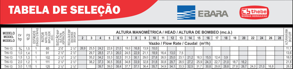 BOMBA INCÊNDIO CENTRÍFUGA MONOESTÁGIO THI-13 2,0 CV MOTOR TRIFÁSICO WEG.IP21/IR3.2P.220/380V.60HZ. ØROTOR 111MM. SELO MEC.5/8" T6 BUNA