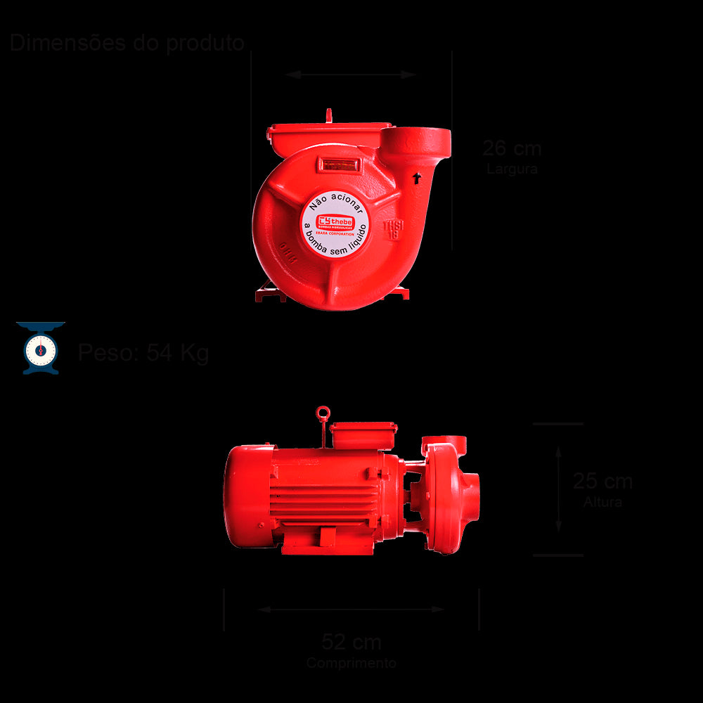 BOMBA INCÊNDIO CENTRÍFUGA MONOESTÁGIO THSI-18 7,5 CV MOTOR MONOFÁSICO THEBE.IP55.2P.220/440V.60HZ. ØROTOR 7/8X163MM. SELO MEC.1"T12 BUNA