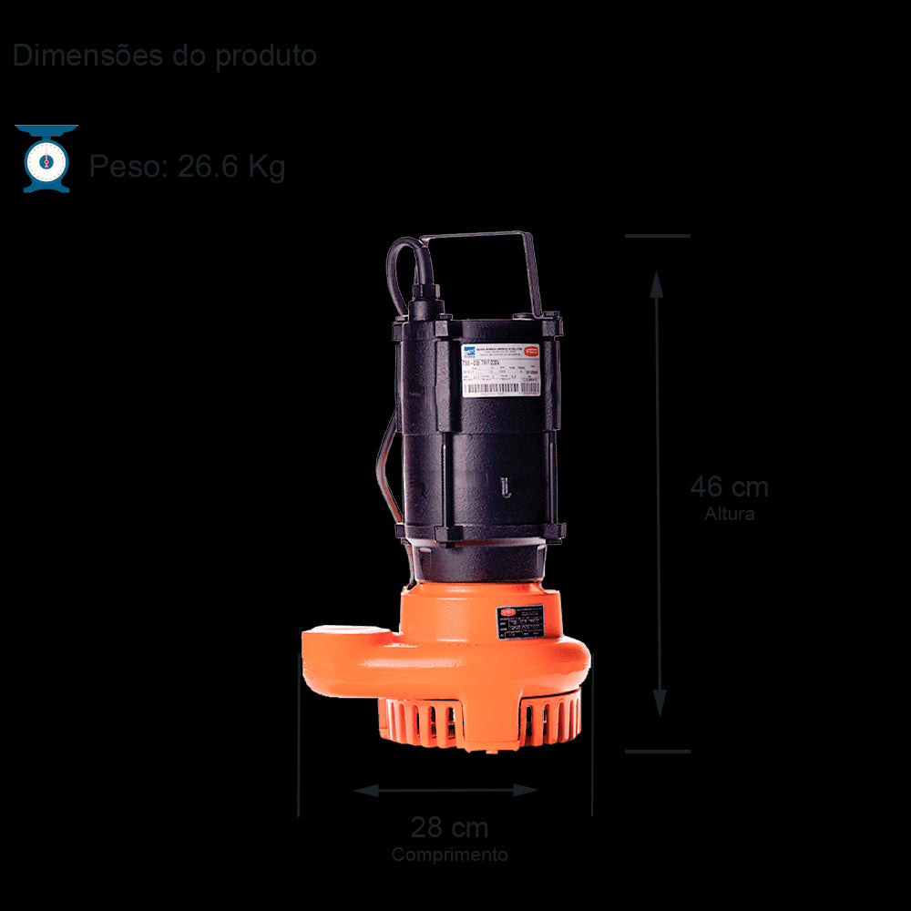 BOMBA SUBMERSÍVEL TSB-005 1,0 cv ØROTOR 90mm MONOFÁSICO MOTOR WEG IP68 220V