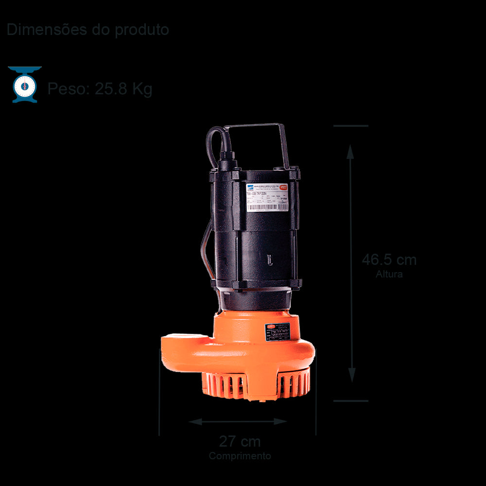 BOMBA SUBMERSÍVEL TSB-005 1,0 cv ØROTOR 90mm TRIFÁSICO MOTOR WEG IP68 380V