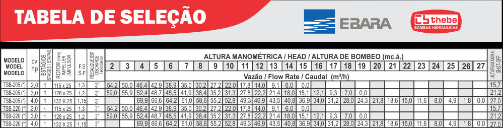 BOMBA SUBMERSÍVEL TSB-205 3,0 cv ØROTOR 128mm TRIFÁSICO MOTOR WEG IP68 220V