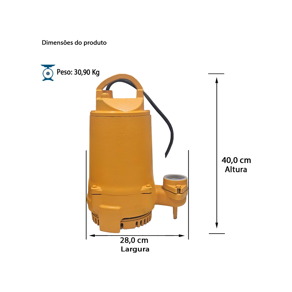 Indicada para águas servidas, sujas, com sólidos em suspensão no diâmetro máximo 7mm;