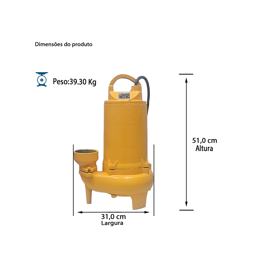 Indicada para bombeamento de esgoto e efluentes, com sólidos em suspensão no diâmetro máximo de 45mm;