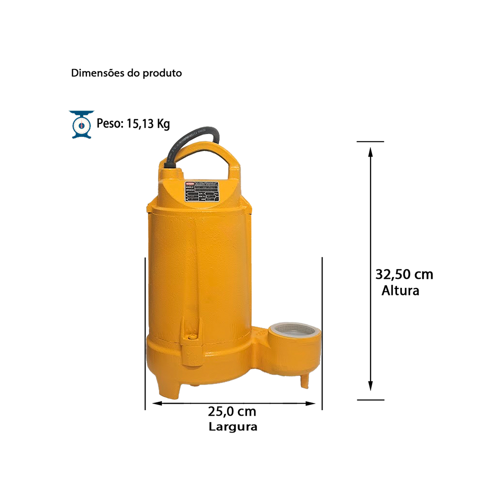 Indicada para bombeamento de esgoto e efluentes, com sólidos em suspensão no diâmetro máximo de 20mm;