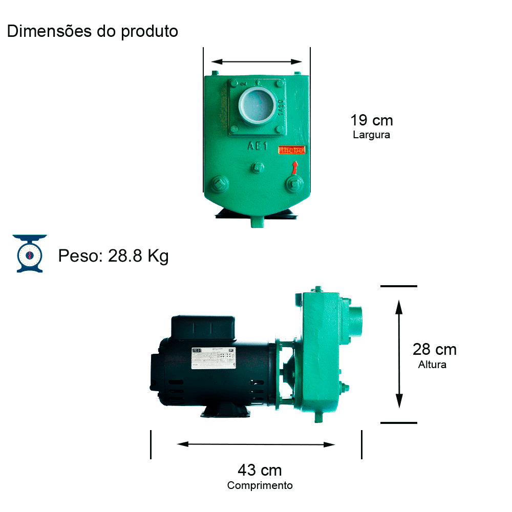 BOMBA AUTOESCORVANTE MONOESTÁGIO AEX-1 1,5 CV MONOFÁSICO MOTOR WEG IP21 COM CAPACITOR 127/220-254V ROTOR SEMIABERTO 7/16X115MM SELO MECÂNICO 5/8" T12