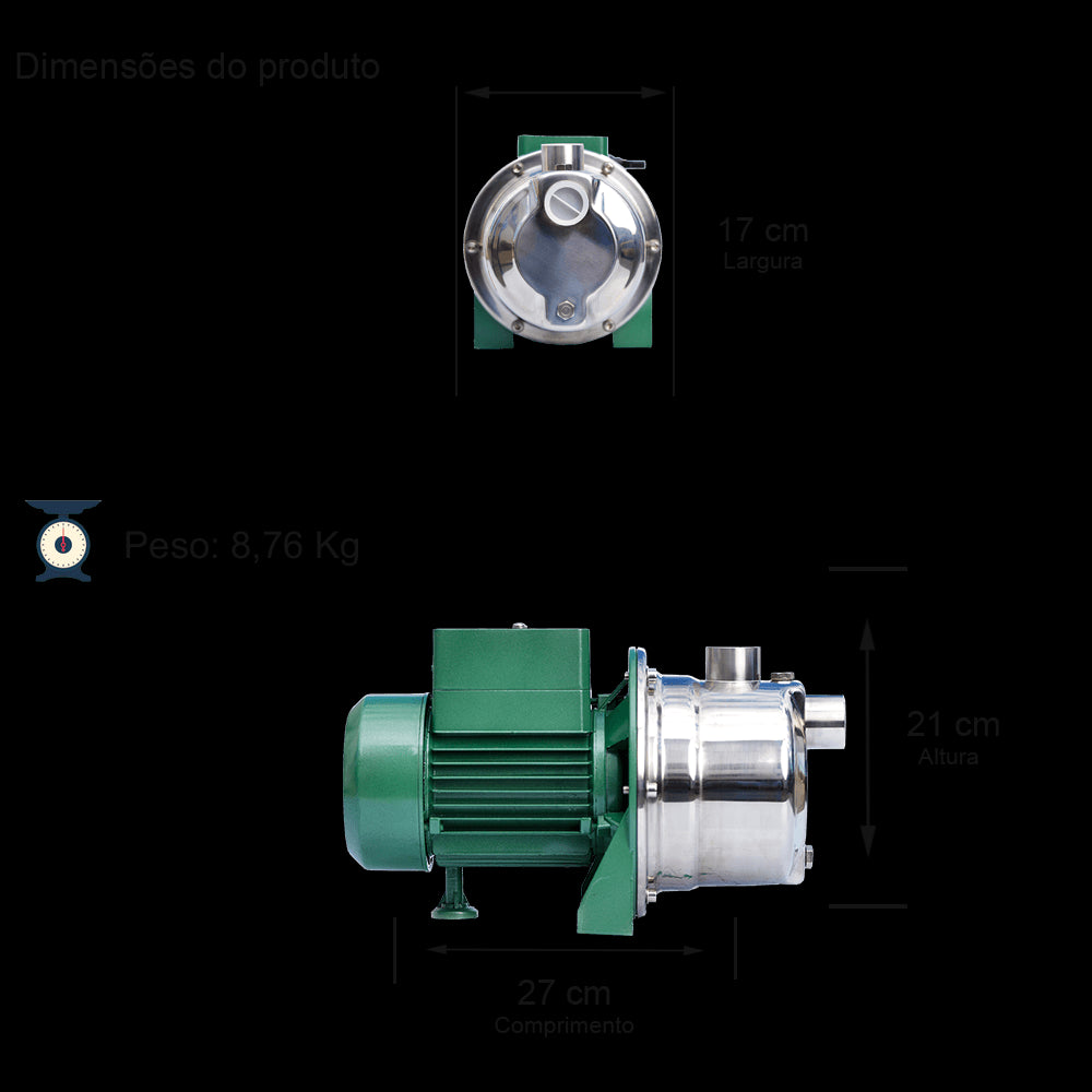 Bomba com carcaça em aço inox e rotor em tecnopolímero