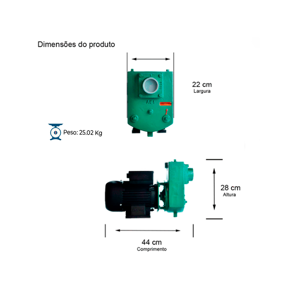 BOMBA AUTOESCORVANTE MONOESTÁGIO AEX-1 2,0 CV MOTOR MONOFÁSICO THEBE.IP55.2P.220/440V.ROTOR SEMIABERTO.7/16X124MM. SELO MEC. 5/8" T12 BUNA