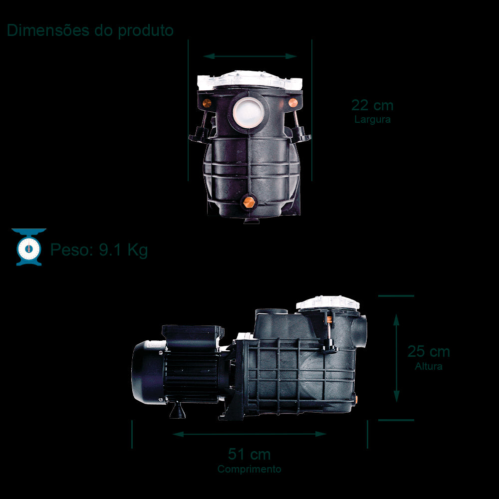 BOMBA PISCINA TSW-250 1/3 cv MONOFÁSICO MOTOR THEBE IP44 127/220V