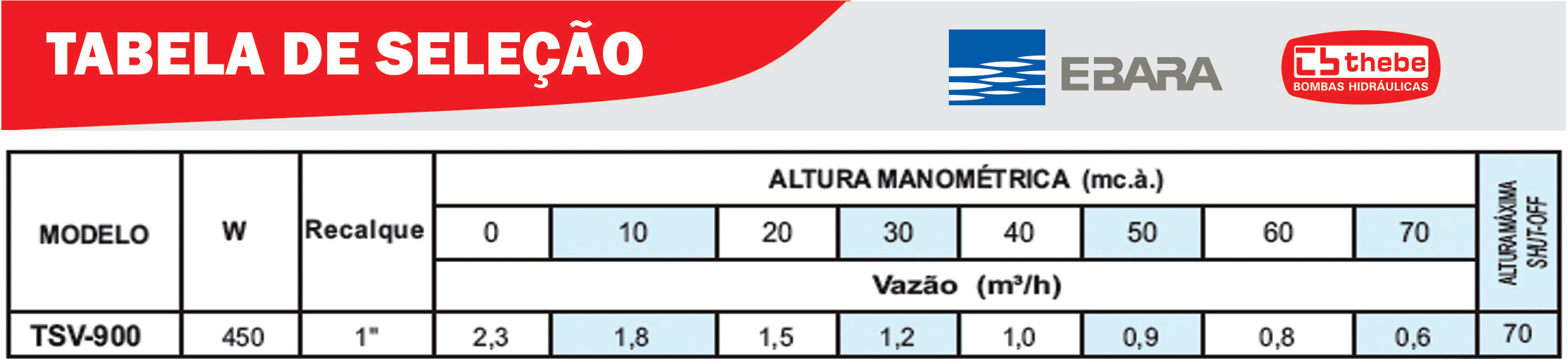 BOMBA SUBMERSA VIBRATÓRIA TSV-900 0,60 cv MONOFÁSICO MOTOR THEBE IP68 220V