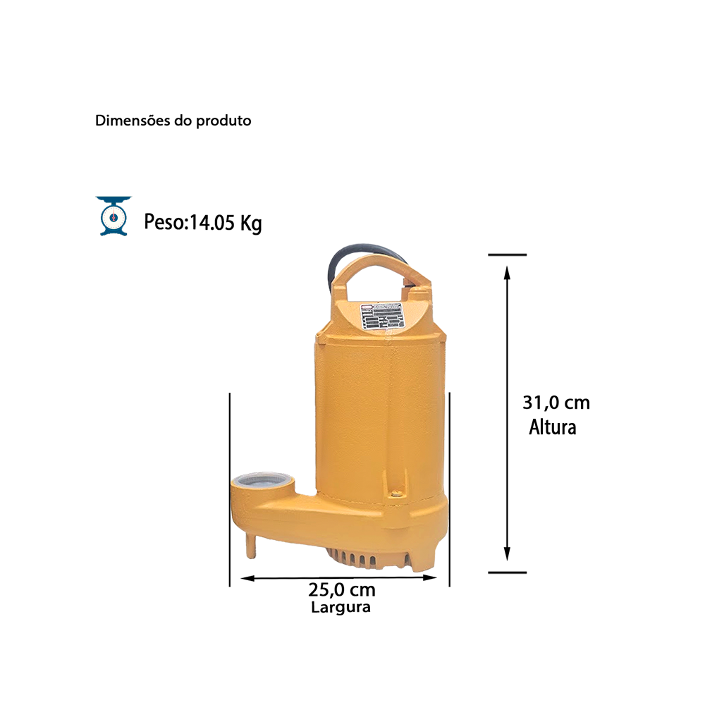 Indicada para água servidas, sujas, com sólidos em suspensão no diâmetro máximo de 6mm;