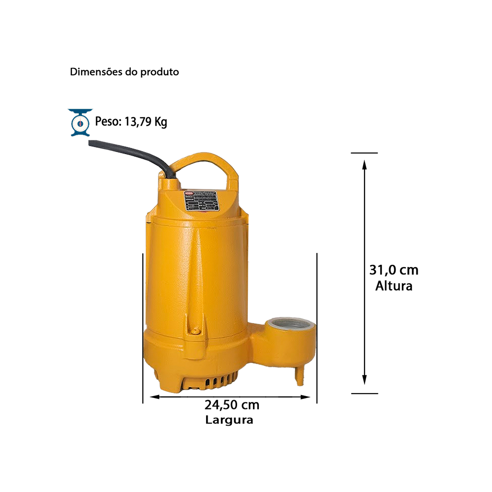 Indicada para água servidas, sujas, com sólidos em suspensão no diâmetro máximo de 6mm;