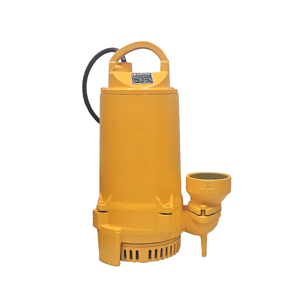 Bomba Centrífuga Submersível - Rotor semiaberto tipo Vortex Motor refrigerado a óleo hidráulico em II Polos, 60hz, 3500rpm - Bocal com rosca BSP 3" (TSBD-850N). Utilizada para drenagem de água com sólidos no diâmetro máximo de 7mm não fibrosos Obs.: Não utilizar em água potável devido ao óleo hidráulico. Carcaça, camisa e grade em ferro fundido GG-20. Rotor em ferro fundido GG-20. anéis de vedação em Buna N. Selo mecânico: Faces em grafite e cerâmica. Mola em inox 304 e elastômero (borracha) em Buna N.
