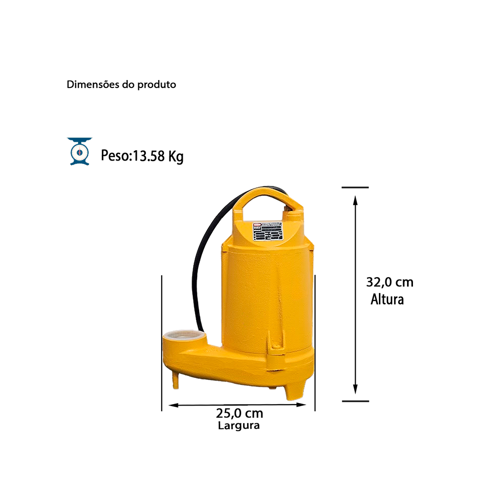 Indicada para bombeamento de esgoto e efluentes, com sólidos em suspensão no diâmetro máximo de 20mm;