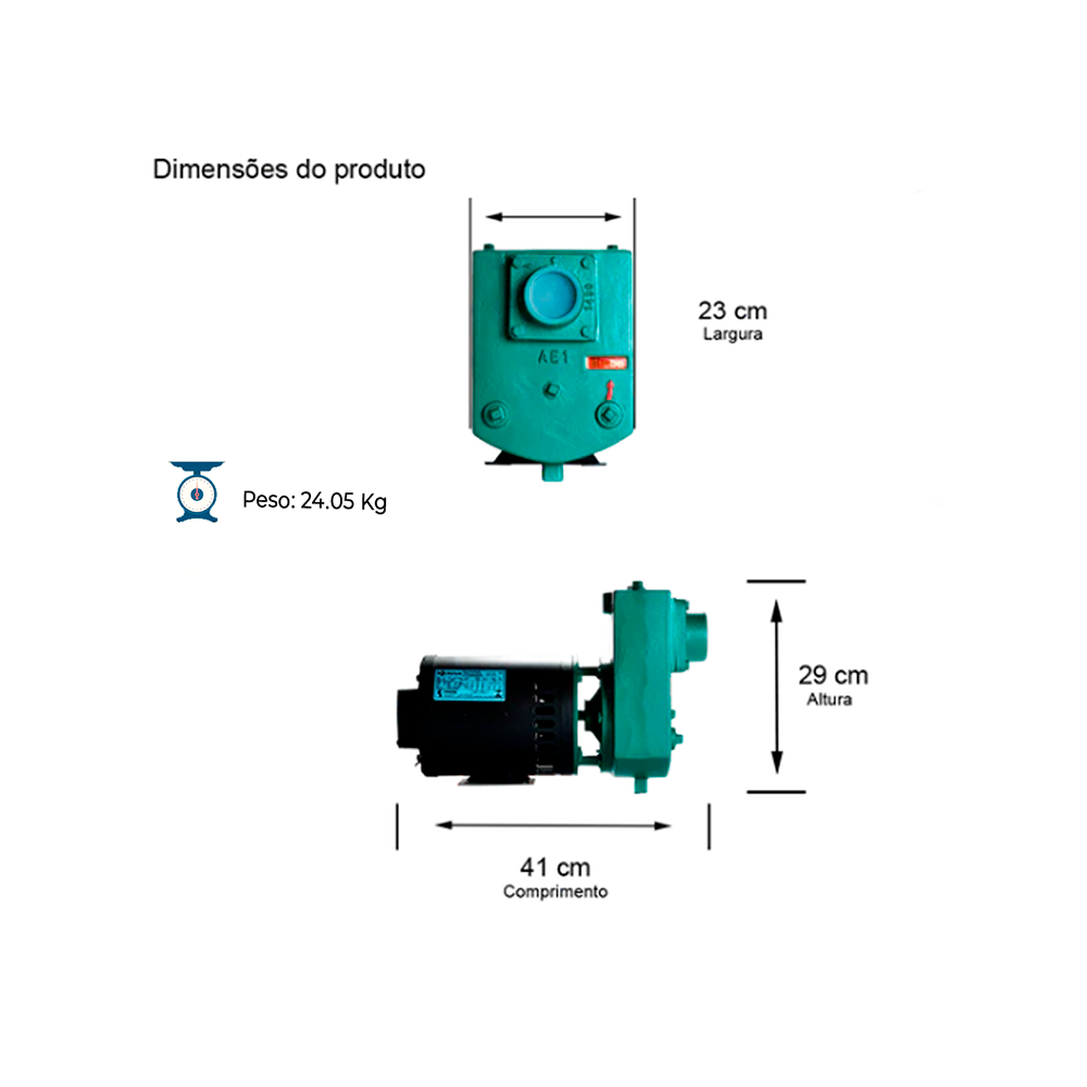 BOMBA AUTOESCORVANTE MONOESTÁGIO AEX-1 1,0 CV MOTOR TRIFÁSICO NOVA IP21 220/380V ROTOR SEMIABERTO 7/16X107MM