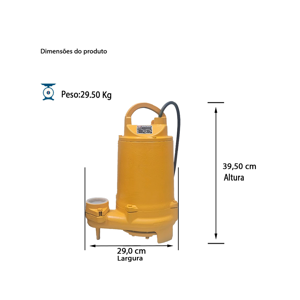 Indicada para bombeamento de esgoto e efluentes, com sólidos em suspensão no diâmetro máximo de 20mm;