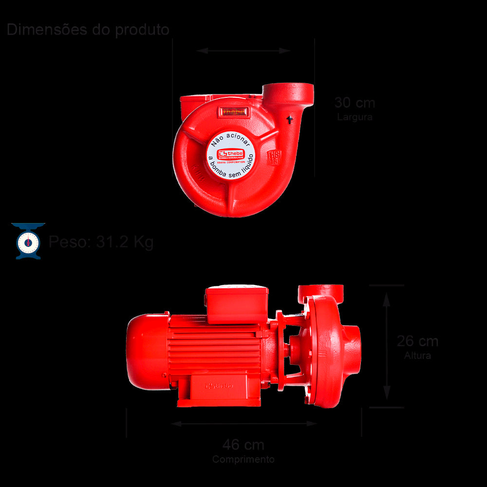 BOMBA INCÊNDIO CENTRÍFUGA MONOESTÁGIO THSI-18 3,0 CV MOTOR TRIFÁSICO THEBE IP55 ROTOR 7/8X128MM