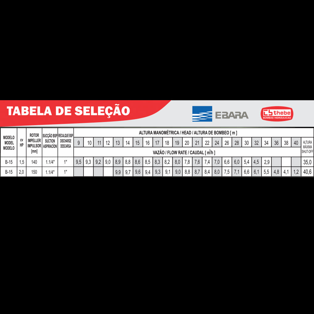 BOMBA MONOESTÁGIO B-15 1,5 CV MONOFÁSICO IP44 127/220V SELO/ANEL VITON