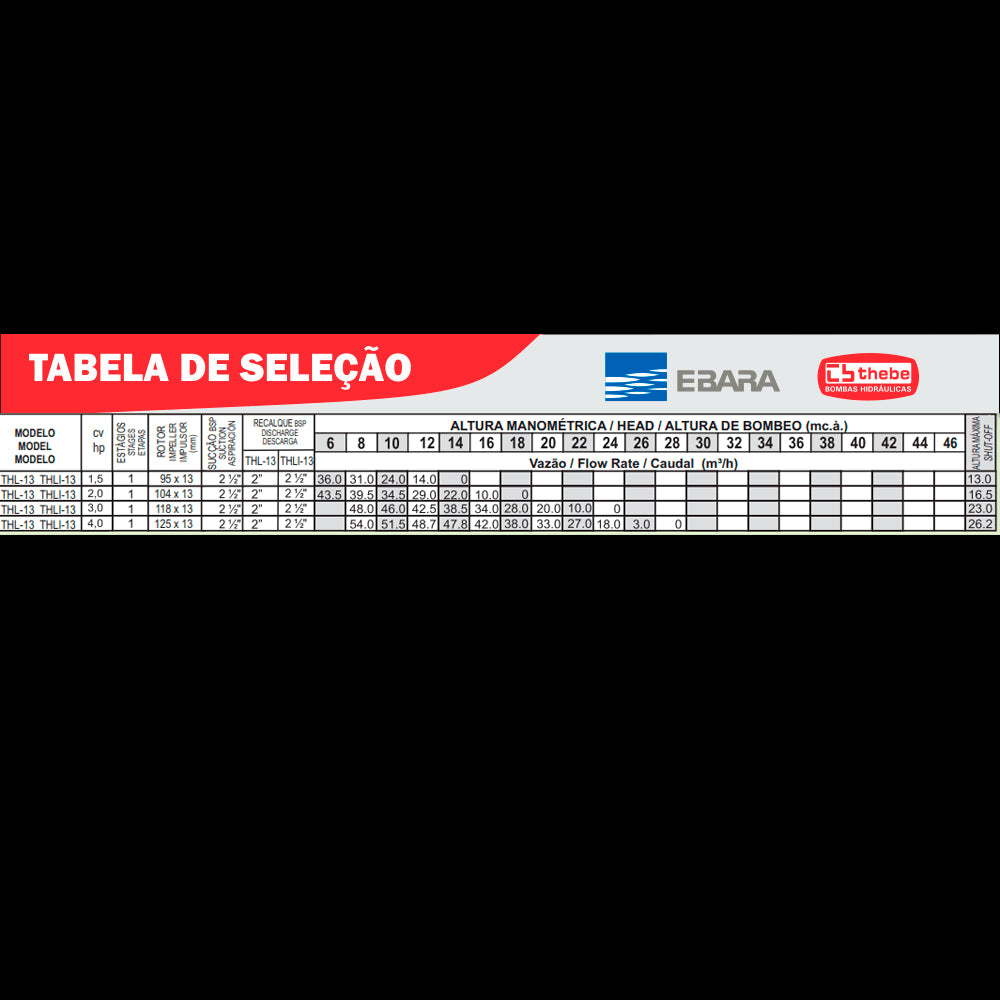 BOMBA MONOESTÁGIO THL-13 1,5 CV Ø ROTOR 95MM TRIFÁSICO MOTOR NOVA IP21 220/380/440 V