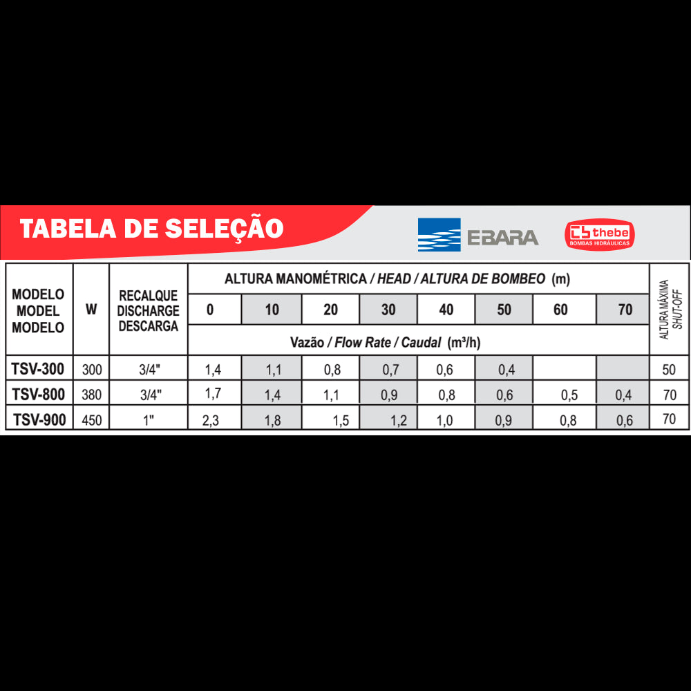 BOMBA SUBMERSA VIBRATÓRIA TSV-300 MONOFÁSICO MOTOR THEBE IP68 220V