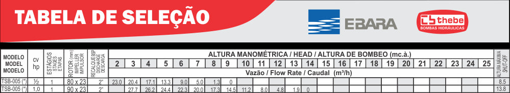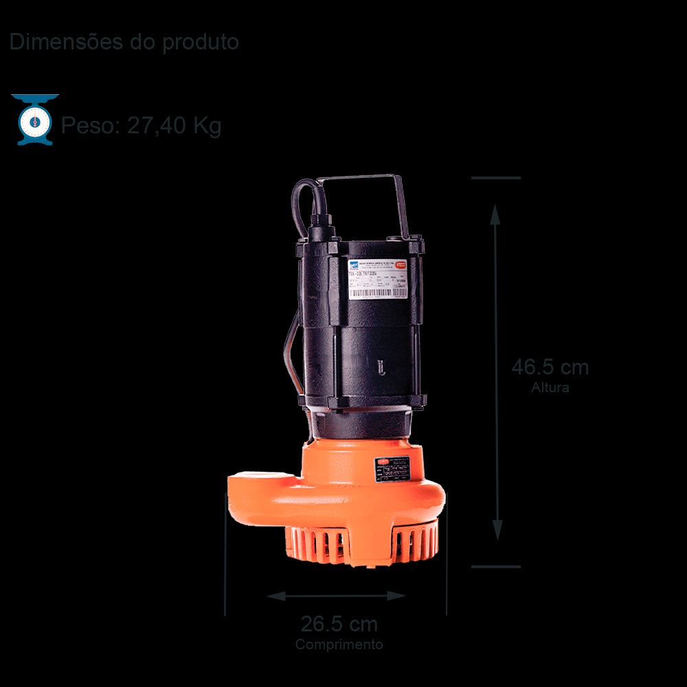 BOMBA SUBMERSÍVEL TSB-005 1,0 cv ØROTOR 90mm MONOFÁSICO MOTOR WEG IP68 127V