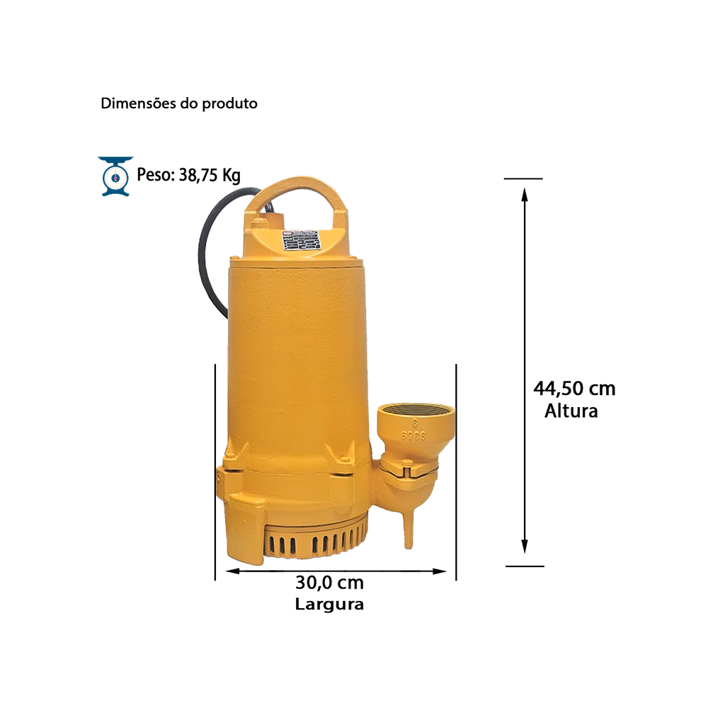 Indicada para águas servidas, sujas, com sólidos em suspensão no diâmetro máximo 7mm;