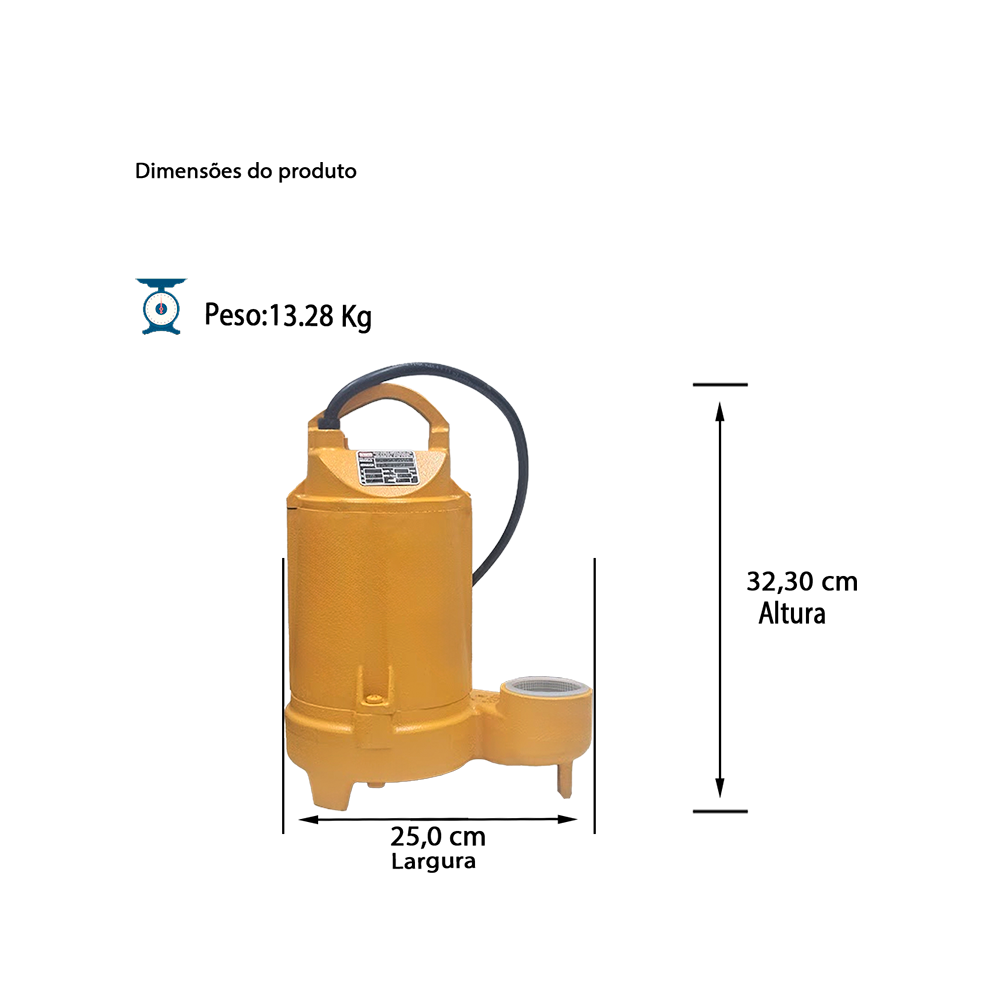 Indicada para bombeamento de esgoto e efluentes, com sólidos em suspensão no diâmetro máximo de 20mm;