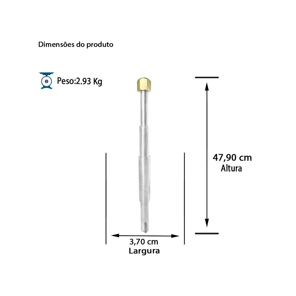 Kit com eixo em aço carbono SAE 1045, chaveta em aço carbono SAE 1045 1/4" x 1/4" x 40mm, chaveta em aço carbono SAE 1045 5 x 5 x 25mm, e porca em latão 1/2" BSP para bomba RL-20B