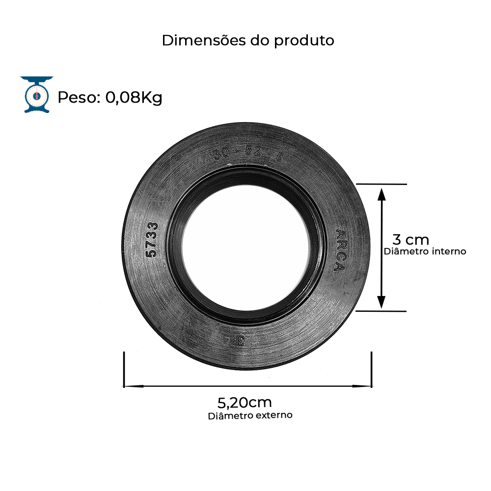Retentor em borracha nitrílica para eixo de Ø30mm, alojamento de Ø52mm e altura de 8mm.