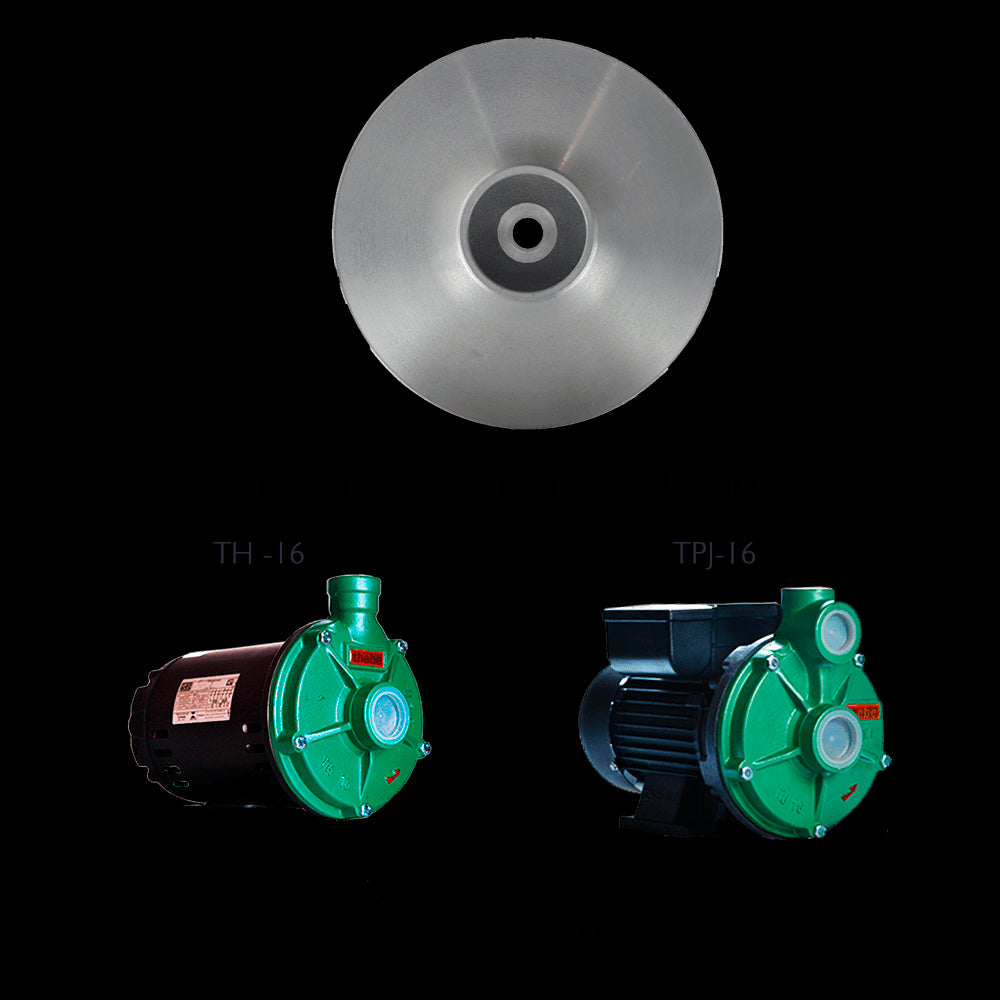 Rotor fechado em Alumínio com diâmetro de 128mm e rosca de 7/16" para montagem nos modelos TH-16 AL e TPJ-16 AL (1,0cv)