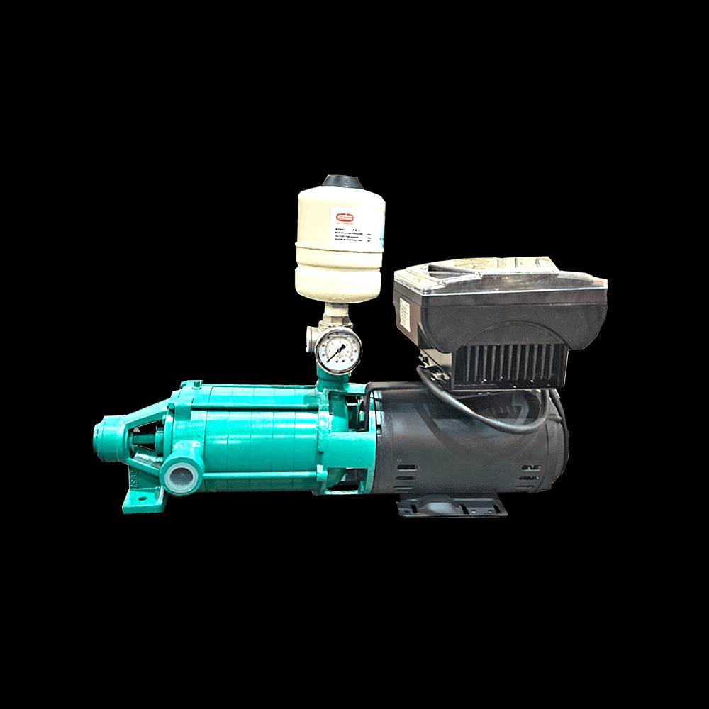 Motobomba Centrífuga Multiestágios Monobloco com pressurizador INVERTERW1 na tensão 220/380V. Motor Trifásico de 3,0cv IP-21, II Polos, 60Hz, 3500rpm - Bocais com rosca BSP, Sucção 1" x Recalque 1". Utilizada para água limpa até temperatura de 40ºC. Vazão Máxima: 9,0m³/h - Vazão Mínima: 0,3m³/h; Pressão Máxima: 171,0mca - Pressão Mínima: 28,0mca. A bomba com o pressurizador INVERTERW1 possui as características abaixo: Pode economizar 30% a 60% de energia; Não gera golpe de aríete; Display digital; Tecnologia de proteção do equipamento; Executa repartida automática após falta de água e energia; Funcionamento em cascata; Executa revezamento entre as bombas. Carcaça em ferro fundido. Rotor em Noryl. Ponta do eixo em aço inox (evita corrosão prematura). Anel O´ring de vedação da carcaça em Buna N. Selo mecânico: Faces em grafite e cerâmica. Mola em inox 304 e elastômero (borracha) em Buna N.