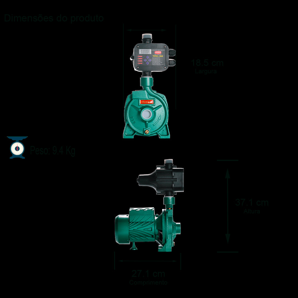SISTEMA DE PRESSURIZAÇÃO T-PRESS TPC-58 B-10 1/2 CV MONOFÁSICO MOTOR THEBE IP44 220V